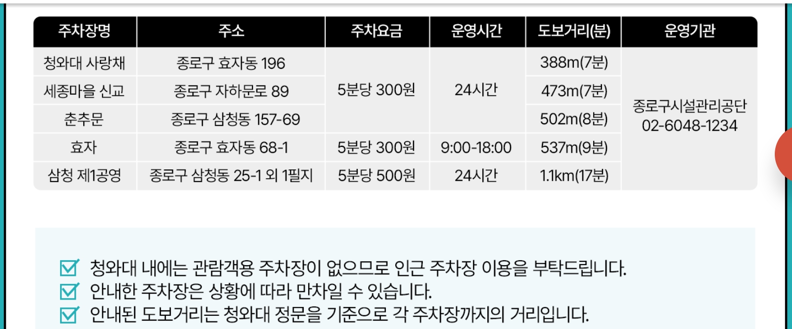 청와대를 관람할 계획이 있는 분들을 위해 주차장 정보를 정리했습니다.