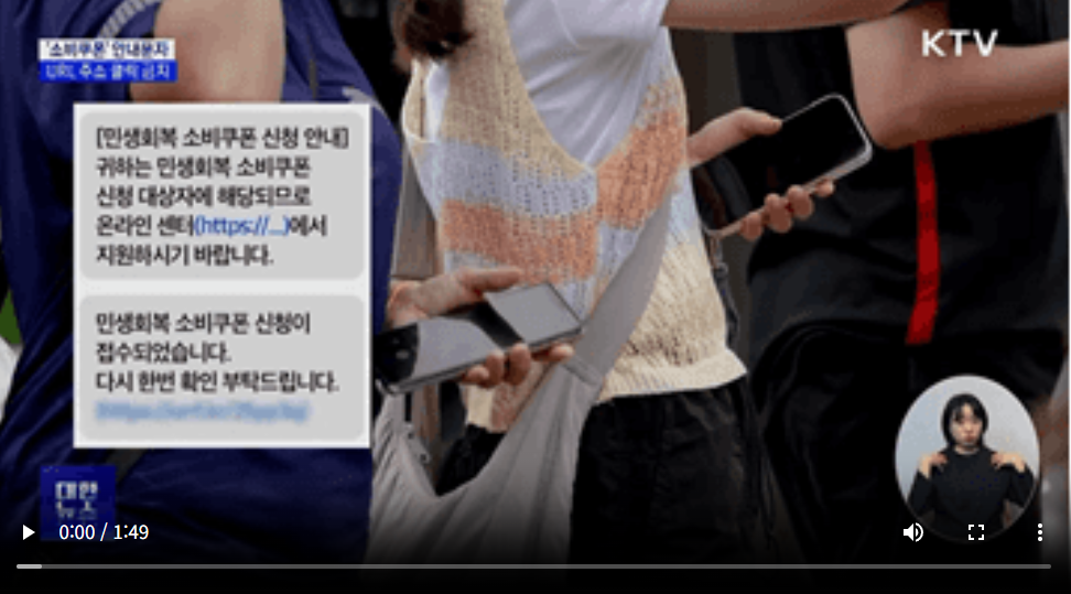 '소비쿠폰' 안내문자 URL 주소 클릭 금지···스미싱 주의보
